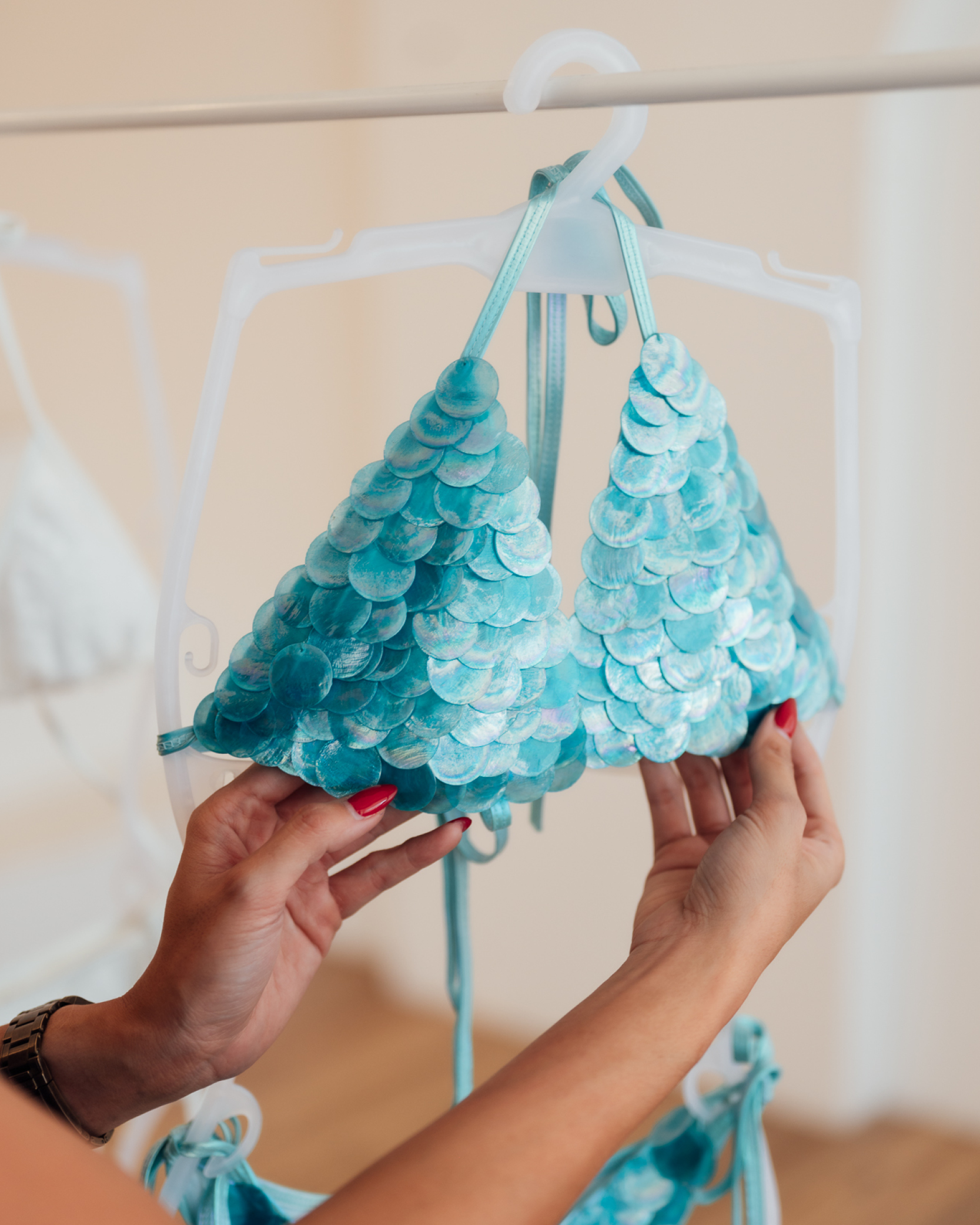 หนึ่งในนั้นก็คือแบรนด์ ‘SANDAA’ โดยเฉพาะคอลเลกชัน ‘Oasis’ กับ ‘Talulu’ ที่มีความเก๋คือทำมาจากเปลือกหอย เป็นประกายเมื่อสะท้อนกับแสงแดดจ้า เสริมให้ตัวคนใส่ดูโดดเด่นมากขึ้น