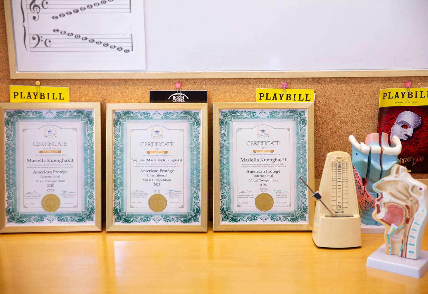 ล่าสุดเธอได้พานักเรียนในสถาบันไปคว้ารางวัลในการประกวด American Protégé ที่เวที Carnegie Hall, New York 2025 ถึง 3 คน มาจับเข่าพูดคุยตั้งแต่จุดเริ่มต้น แนวคิด หลักสูตร ทำอย่างไรให้คว้ารางวัลระดับโลก ไปจนถึงคำถามเบสิกอย่าง คนเสียงเพี้ยนจะร้องเพลงได้ไหม