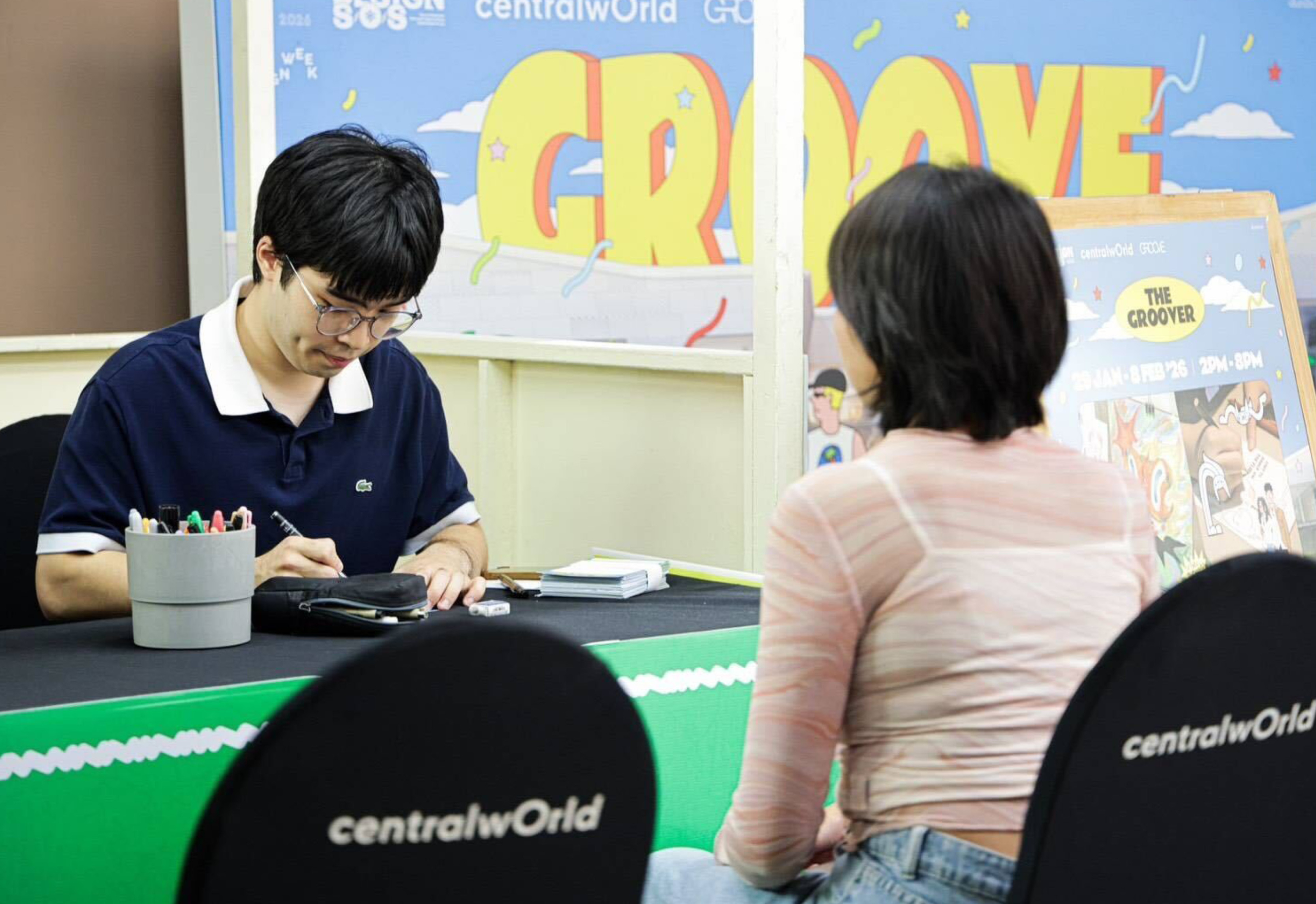 The Groover – Live Portrait Drawing: กิจกรรมวาดภาพเหมือนโดยศิลปินไทยรุ่นใหม่ เช่น Plan, goodnight.xinqxinq, POLAND, Twofeetcat, Cat Me Five, วาดรูปแค่นี้ทำไมนานจัง, PaMkids, Jane Kibari, Pong songsai, DaisiesDayDreams และ dewy เปิดพื้นที่ให้ผู้คนได้ใช้เวลานั่งพูดคุย และบันทึกช่วงเวลาของชีวิตเมืองผ่านงานศิลปะ ให้เป็นความทรงจำสุดพิเศษ วันที่ 29 มกราคม-8 กุมภาพันธ์ 2569 ตั้งแต่เวลา 14.00-20.00 น. ที่บริเวณโซน Groove ชั้น 2