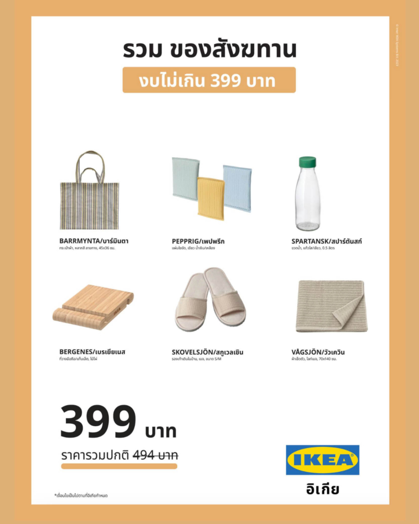 ในช่วงเวลาสำคัญทางพุทธศาสนา IKEA เปิดตัวชุดสังฆทานสำเร็จรูปที่จัดวางอย่างมีระเบียบในตะกร้า IKEA พร้อมสินค้าคุณภาพ เช่น ผ้าเช็ดตัว ข้าวสาร อาหารแห้ง ฯลฯ ซึ่งทั้งหมดล้วนคัดสรรมาอย่างตั้งใจ สอดคล้องกับสิ่งที่พระสงฆ์สามารถใช้ได้จริง ถือเป็นการผสมผสานระหว่างความเรียบง่ายแบบสแกนดิเนเวียน กับความศรัทธาในแบบไทยได้อย่างกลมกลืน