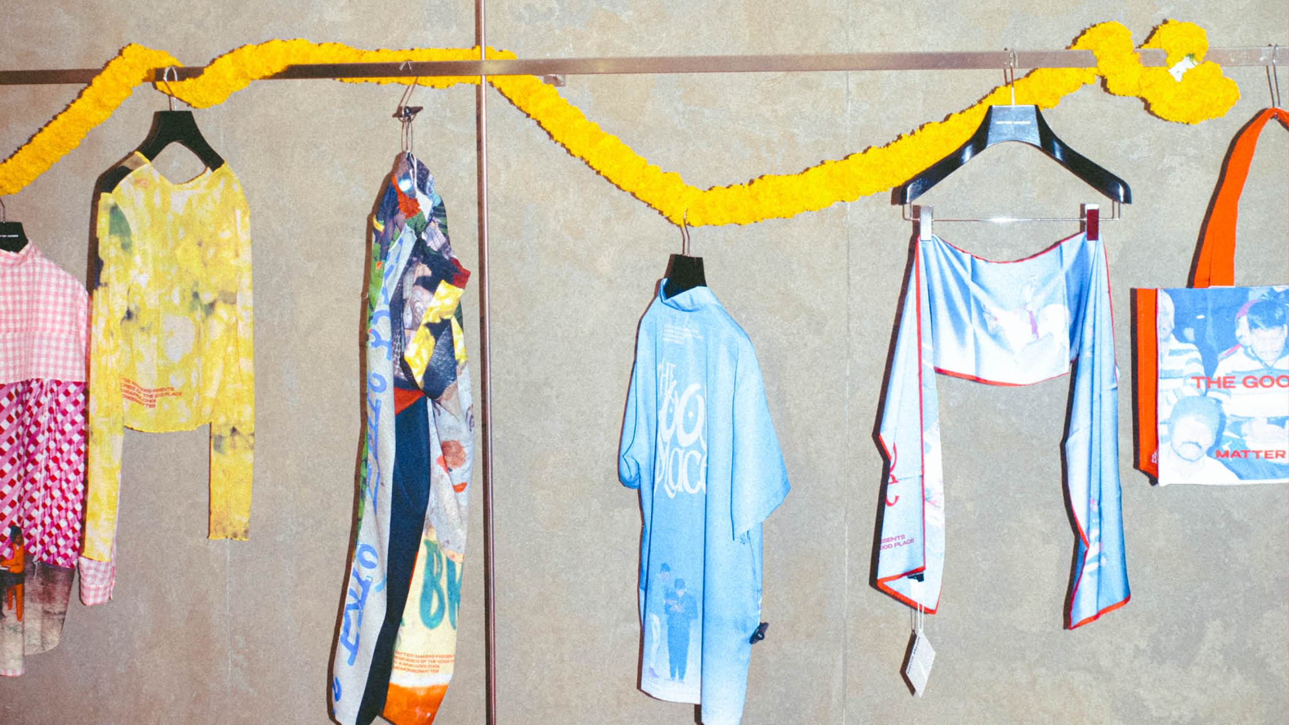 ดังนั้นในงานอีเวนต์ ‘Memories Matter’ ของ MATTER MAKERS เมื่อวันที่ 12 มีนาคมที่ผ่านมา ซึ่งจัดขึ้นเพื่อเปิดตัวคอลเลกชันนี้ จึงเปรียบเสมือนนิทรรศการในร้านเสื้อผ้า นอกจากจะได้สัมผัสกับเสื้อผ้า กับไอเทมต่างๆ จากคอลเลกชันนี้ ผู้ร่วมงานยังได้สนุกไปกับ VR Game ที่ต่อยอดโลกของ The Good Place ให้เราเข้าไปสำรวจเมืองพาราณสี เปิดพื้นที่ให้ผู้เล่นได้ตั้งคำถามและตีความความหมายของ ‘สถานที่แห่งความดีงาม’ ผ่านประสบการณ์ส่วนตัวที่ตนเองรู้สึก