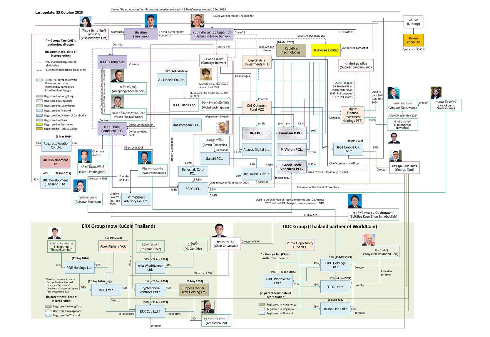 โดยบริษัทที่เข้าข่ายก็จะมี TIDC กับ ERX ซึ่ง ERX คือกระดานคริปโตเคอร์เรนซี (Cryptocurrency) (ภายหลังเปลี่ยนชื่อเป็น KuCoin Thailand) ได้รับใบอนุญาตจากสำนักงานคณะกรรมการกำกับหลักทรัพย์และตลาดหลักทรัพย์ (ก.ล.ต.) ส่วน TIDC ก็คือบริษัทเทคโนโลยีที่เมื่อ 2-3 ปีก่อนมีข่าวว่า เป็นพาร์ตเนอร์ของกระทรวงดิจิทัลจะทำเรื่องเกี่ยวกับ Digital Ecosystem บางอย่าง และช่วงที่ผ่านมาก็จะโด่งดังจากการเป็นพาร์ตเนอร์คนไทยของ WorldCoin ที่สแกนม่านตา