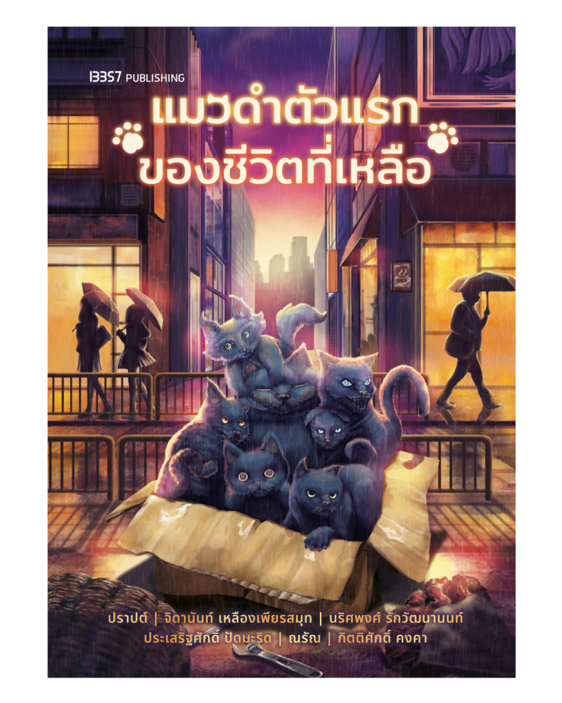 “สำหรับแมวดำตัวแรกของชีวิตที่เหลือ มีโอกาสไปเป็นหนึ่งในนักเขียนรวมกับอีก 5 ท่าน รวมเราเป็น 6 คน เล่มนี้ก็รวบรวมนักเขียนร่วมสมัยที่โหดๆ ทั้งนั้นเลย แค่นักเขียนก็น่าสนใจแล้ว ส่วนประเด็นคือทุกคนจะได้โจทย์เป็นแมวดำ แล้วทุกคนก็จะไปเขียน โดยพี่เบส-กิตติศักดิ์ คงคา ที่เป็นบรรณาธิการของเล่มนี้ เขาก็บรีฟมาว่า อยากให้เขียนเรื่องที่สามารถโยงไปถึงเรื่องเก่าๆ เล่มที่เป็นชิ้นโบแดงของนักเขียนแต่ละคนได้ แต่ว่าด้วยความที่เรายังไม่มีชิ้นโบแดงอะไร ก็ได้ฟรีสไตล์หน่อย”