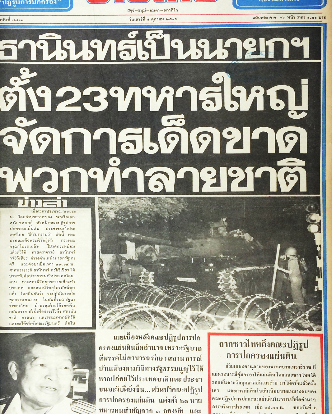 นอกจากนี้หนังสือพิมพ์ฉบับดังกล่าวยังได้ให้ ‘เหตุผล’ ของการรัฐประหารเมื่อวันที่ 6 ตุลาคม 2519 ว่า เป็นเพราะรัฐบาลสี่พรรค (พรรคประชาธิปัตย์ พรรคชาติไทย พรรคธรรมสังคม และพรรคพลังใหม่) ไม่สามารถ ‘รักษา’ สถานการณ์บ้านเมืองตามวิถีทางรัฐธรรมนูญไว้ได้