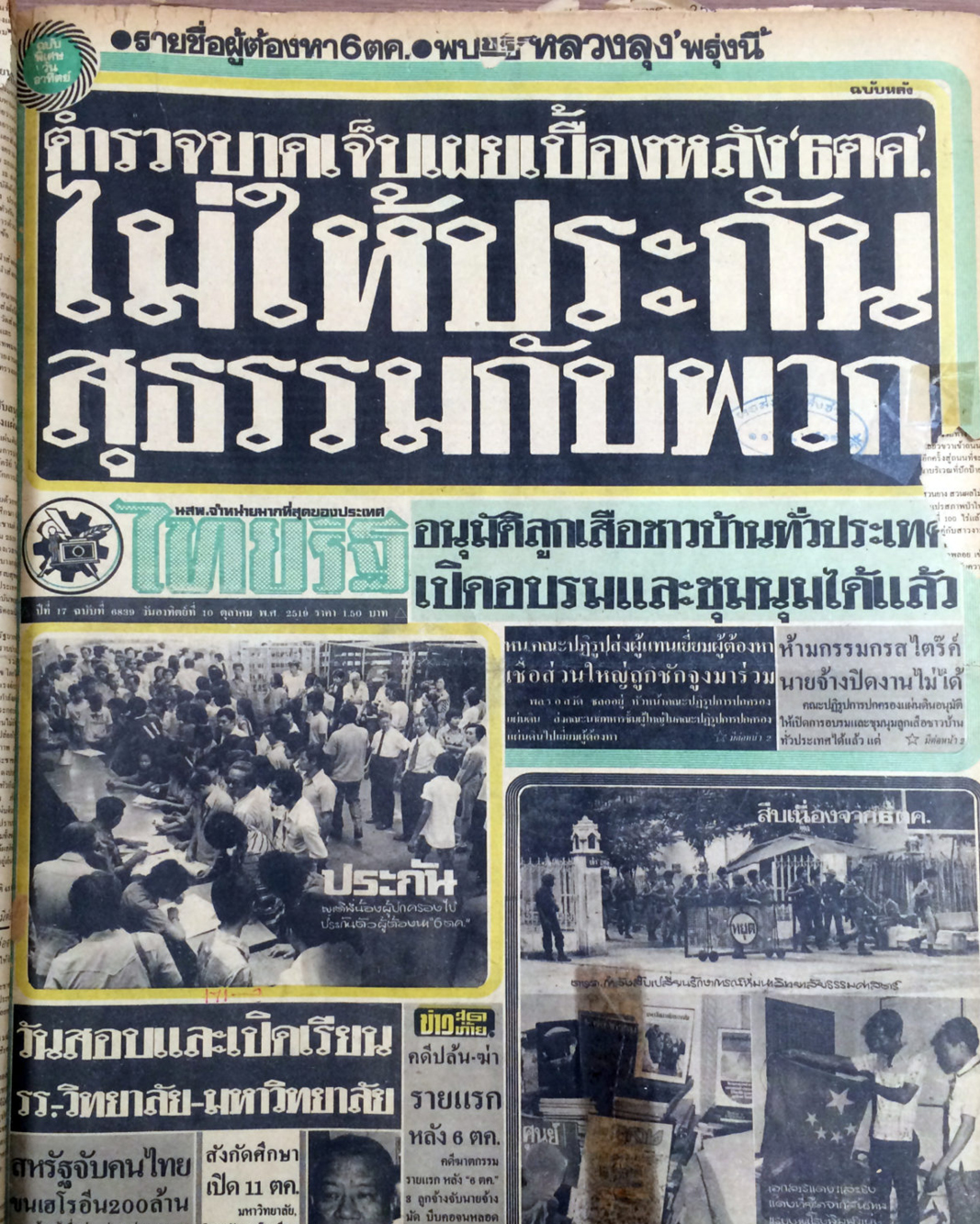 หากจะตอบคำถามว่า อะไรคือปัจจัยสำคัญที่พาการชุมนุมอย่างสันติไปสู่การนองเลือด คำตอบคงมีไม่มากนัก และหนึ่งในนั้นคงหนีไม่พ้นการรายงานข่าวของหนังสือพิมพ์ยุคนั้น ที่มีอิทธิพลตั้งแต่การสร้างความเป็นอื่นให้กับผู้ชุมนุมด้วยการกล่าวหาว่าเป็น ‘คอมมิวนิสต์’, การ ‘บิดเบือน’ เจตนารมณ์ในการเคลื่อนไหวเพื่อสร้างความเกลียดชัง ไปจนถึงการ ‘ปลุกระดม’ ให้เกิดการปราบปรามคนเห็นต่างอย่างเหี้ยมโหด