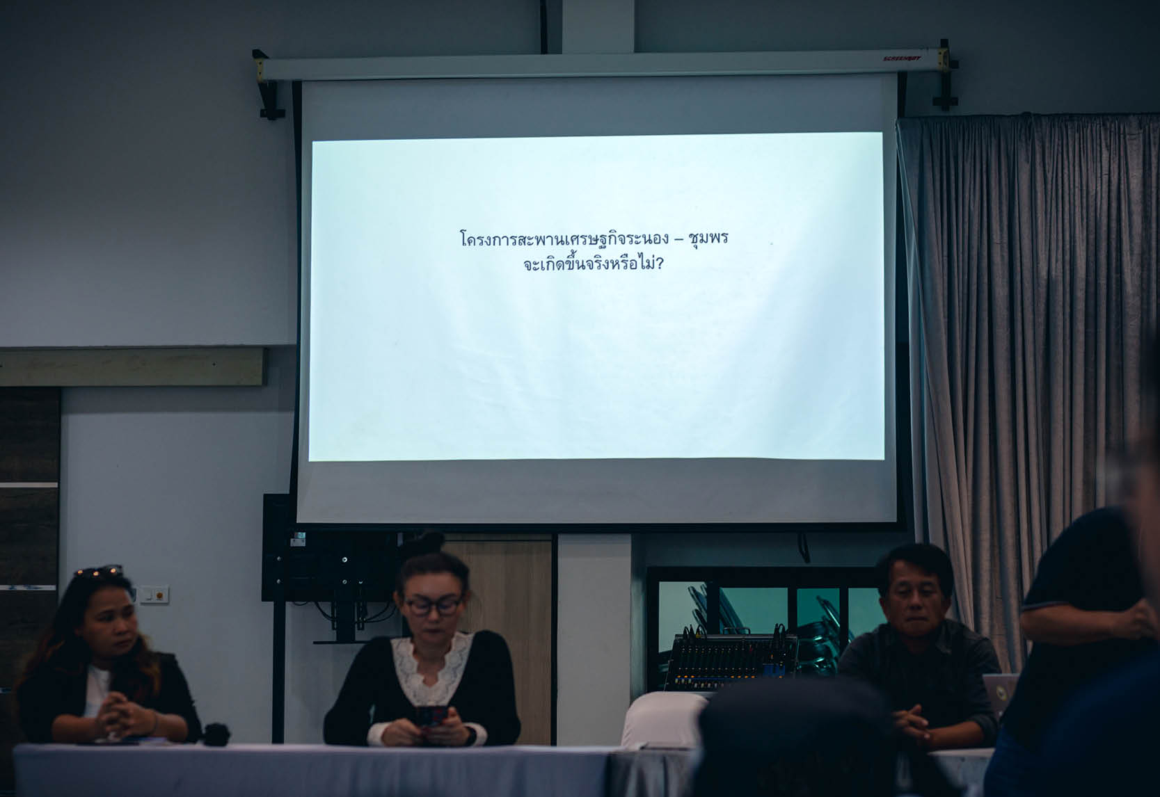 “ความดีเลย์ของการสื่อสารสาธารณะชะลอหรือทำให้กระแสของการคัดค้าน รวมไปถึงการตั้งคำถามนั้นเกิดขึ้นช้า ขณะที่โครงการผลักดันอย่างก้าวหน้า ตั้งแต่ปี 2561 ที่รัฐบาลเห็นชอบหลักการแลนด์บริดจ์ระนอง-ชุมพร และมีการขับเคลื่อนจริงจังในปี 2564 ชุมชนเพิ่งจะเริ่มคัดค้านโครงการในที่สาธารณะครั้งแรกเมื่อปี 2566 ก่อนที่ทุกภาคส่วนจะออกมาแสดงจุดยืนพร้อมกันในปี 2568 ในเวทีรับฟังความคิดเห็นครั้งที่ 3 ด้วยซ้ำ”