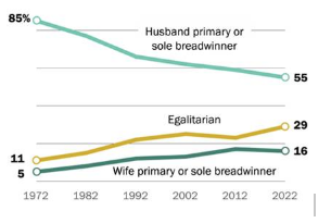 Fry, R., Aragão, C., Hurst, K., & Parker, K. (2023). In a growing share of U.S. marriages, husbands and wives earn about the same. Pew Research Center. https://www.pewresearch.org/social-trends/2023/04/13/in-a-growing-share-of-u-s-marriages-husbands-and-wives-earn-about-the-same/
