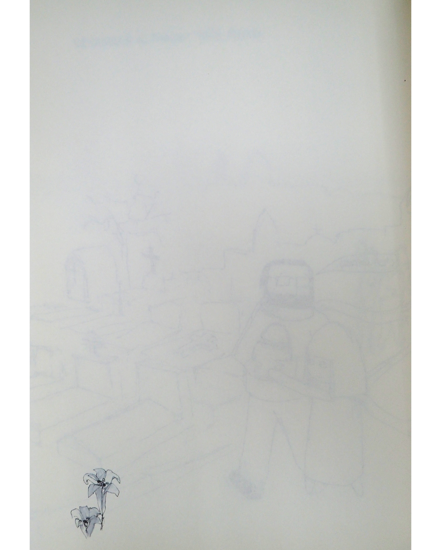 เรื่องราววาดเล่าเป็น 2 ช่วง ตอนต้นคือเมื่อต้องเยียวยาอยู่กับแม่จนแม่จากไป ช่วงต่อมาคือการเรียนรู้ที่จะอยู่โดยไม่มีแม่อีกแล้ว ท่อนแรกจบลงที่เผาแม่ และถือโถใส่เถ้าแม่มาพร้อมกับพ่อผ่านมาทางสุสาน ฉากดังกล่าวเล่าเป็นหน้าคู่ ซ้ายมือมีคำบรรยายสั้นๆ ว่า “วันนั้นอากาศหนาวมาก” และภาพขวามือพ่อลูกพยุงโถพร้อมคำพูดของพ่อ “ร้อนนะ” ร้อน-เย็นปะปนในฉากเดียวกัน เปิดต่อมาคือ 2 หน้าคู่เปล่าเปลือยที่คั่นระหว่าง 2 ช่วง มีเพียงดอกไม้เล็กๆ ตรงมุมซ้ายมือ เพียงแค่นี้ก็พอจะบอกความอาลัยความเศร้าจากการสูญเสีย