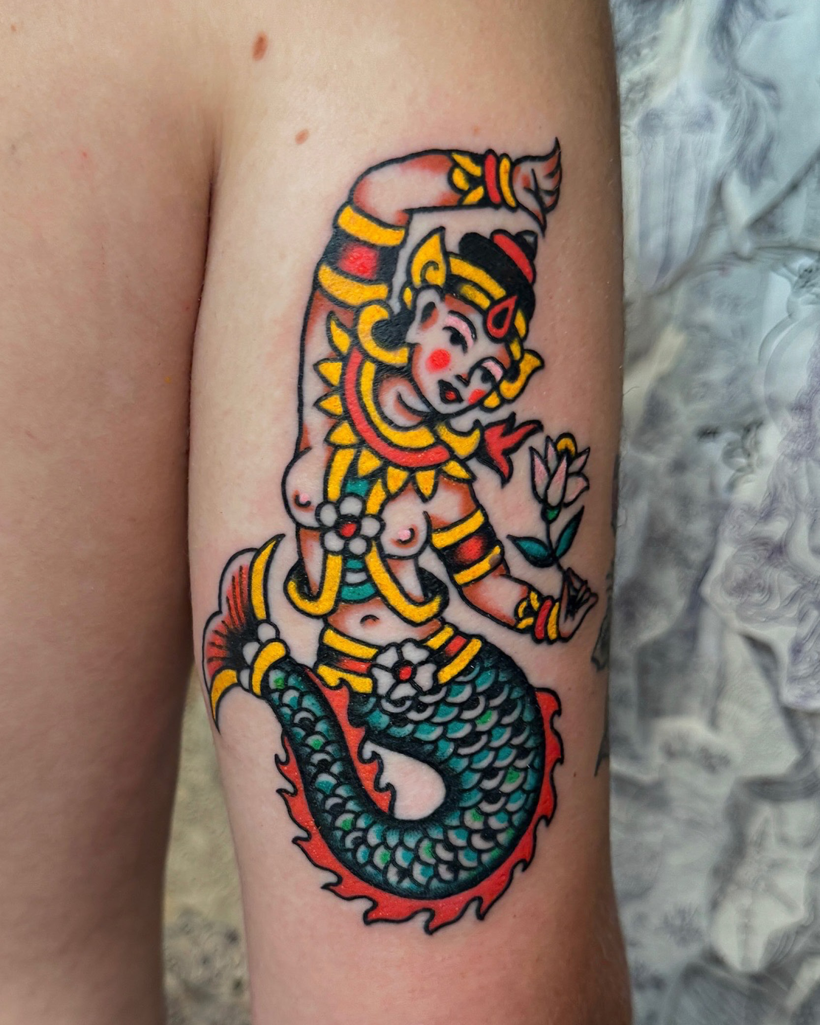 “เป็นการสักเพราะรักในศิลปะ นำภาพดั้งเดิมแบบไทยหรือสไตล์โบราณมาทำให้ใหม่และร่วมสมัย เพราะบางทีคนรุ่นใหม่อาจไม่ได้สนใจลายไทยหรือคาแรกเตอร์จากรามเกียรติ์ แต่เมื่อมันถูกเปลี่ยนมาเป็นรอยสัก แฟชั่น หรือลายบนสเก็ตบอร์ด มันก็กลับมาเท่อีกครั้ง ฉันคิดว่านี่คือการฟื้นฟูวัฒนธรรมเก่าให้กลับมามีชีวิตใหม่อีกครั้ง”