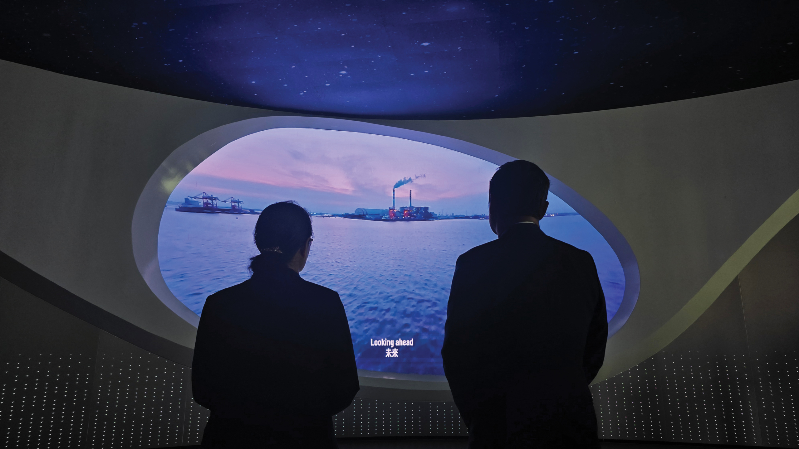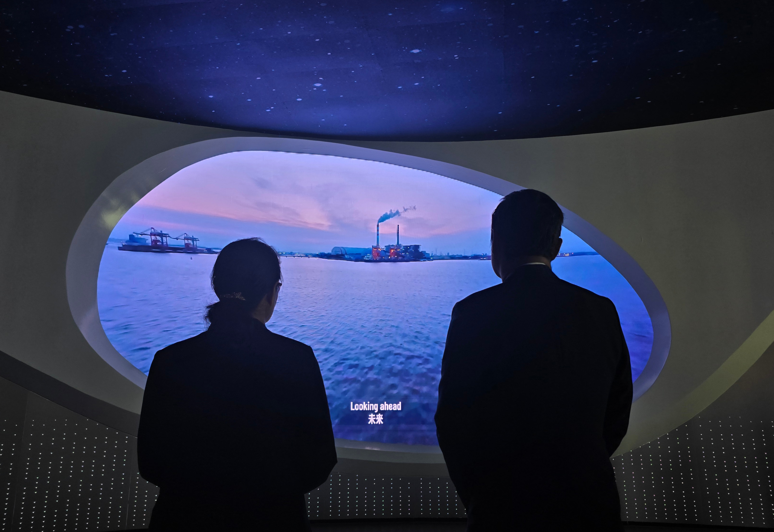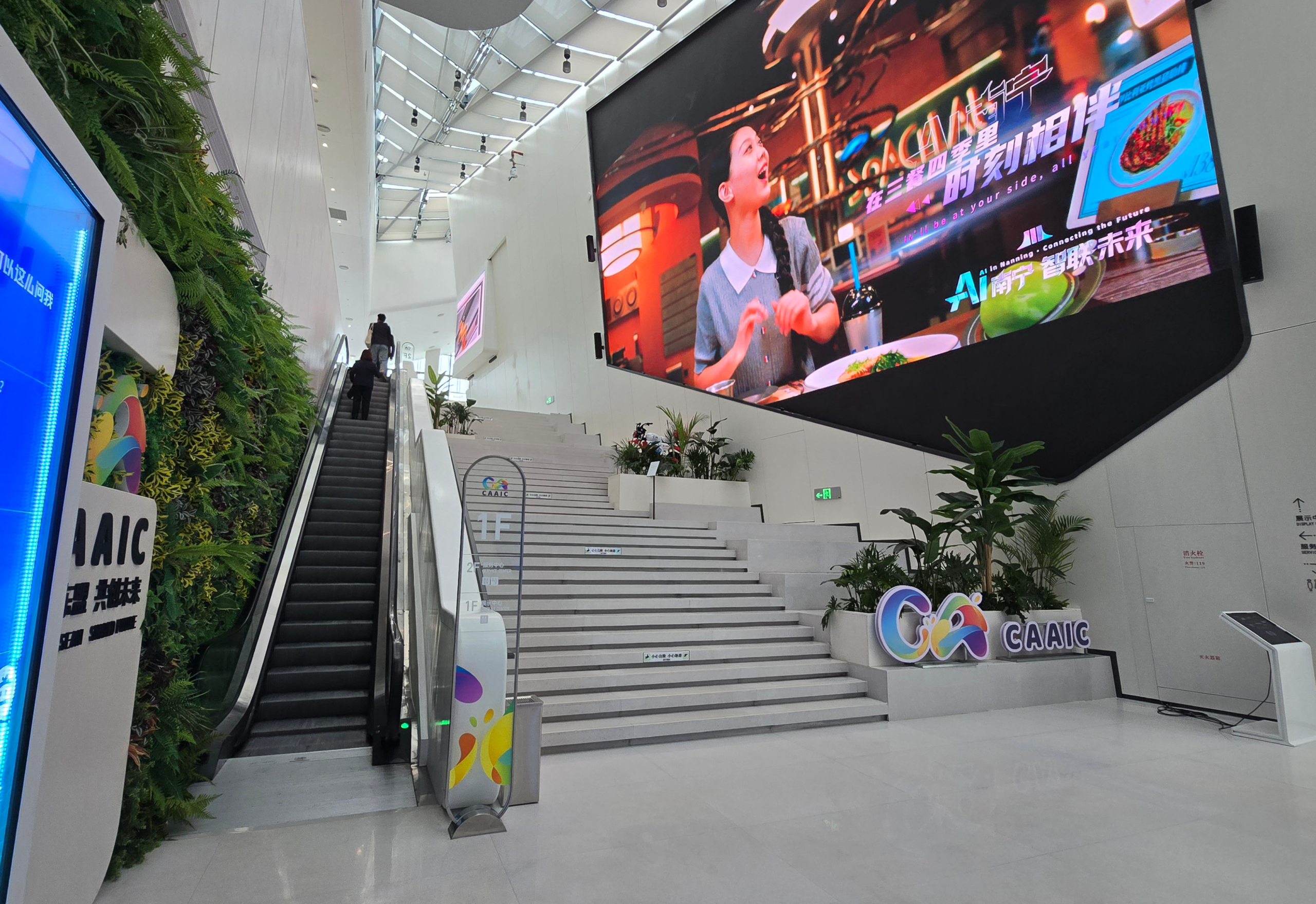 ภายในศูนย์ถูกออกแบบให้มีความทันสมัย มีระบบจอสัมผัสติดตั้งอยู่ตลอดทางเดิน รวมไปถึงอุปกรณ์ที่เป็นผลิตภัณฑ์จากจีน โดยมีการเสริมระบบ AI เข้าไปอยู่ในระบบการทำงานของอุปกรณ์ต่างๆ ซึ่งมีหลายสิ่งที่น่าสนใจ เช่น แว่นแปลภาษาที่สามารถแปลคำพูดของคู่สนทนามาเป็นภาษาจีนหรือภาษาอื่นๆ ได้อย่างรวดเร็ว โดยจะมีการแสดงคำแปลอยู่ที่เลนส์ของแว่น