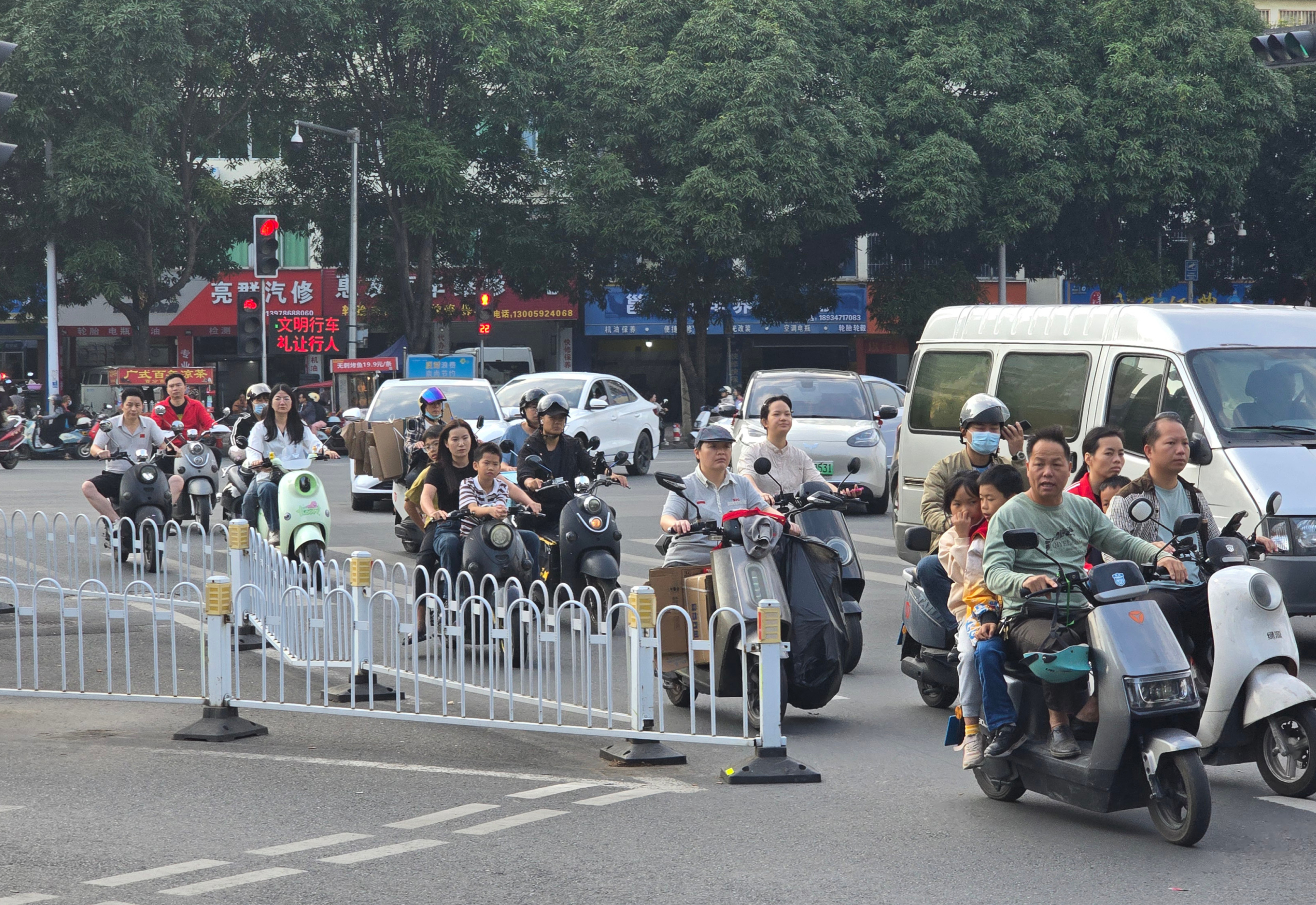 สิ่งที่ผู้เขียนสังเกตเห็นระหว่างทางจากท่าอากาศยานหนานหนิงอู๋ซูไปโรงแรมหนานหนิงหรงหรง คือความนิยมใช้ยานพาหนะไฟฟ้าของคนท้องถิ่น ซึ่งแยกได้ผ่านสีของป้ายทะเบียนรถที่แตกต่างกัน โดย ‘สีฟ้า’ หมายถึง ยานพาหนะยังคงใช้น้ำมัน ส่วน ‘สีเขียว’ หมายถึง ยานพาหนะที่ใช้พลังงานใหม่ หรือเรียกง่ายๆ ว่ารถไฟฟ้า ซึ่งโดยทั่วไปรถไฟฟ้ามักได้รับสิทธิประโยชน์ที่ดีกว่า ไม่ว่าจะเป็นภาษี ราคาที่เข้าถึงได้ รวมไปถึงข้อกำหนดของบางเมืองที่พยายามจำกัดการใช้งานรถสันดาป ส่งผลให้ชาวเมืองหันมานิยมรถไฟฟ้าเพิ่มมากขึ้นเรื่อยๆ