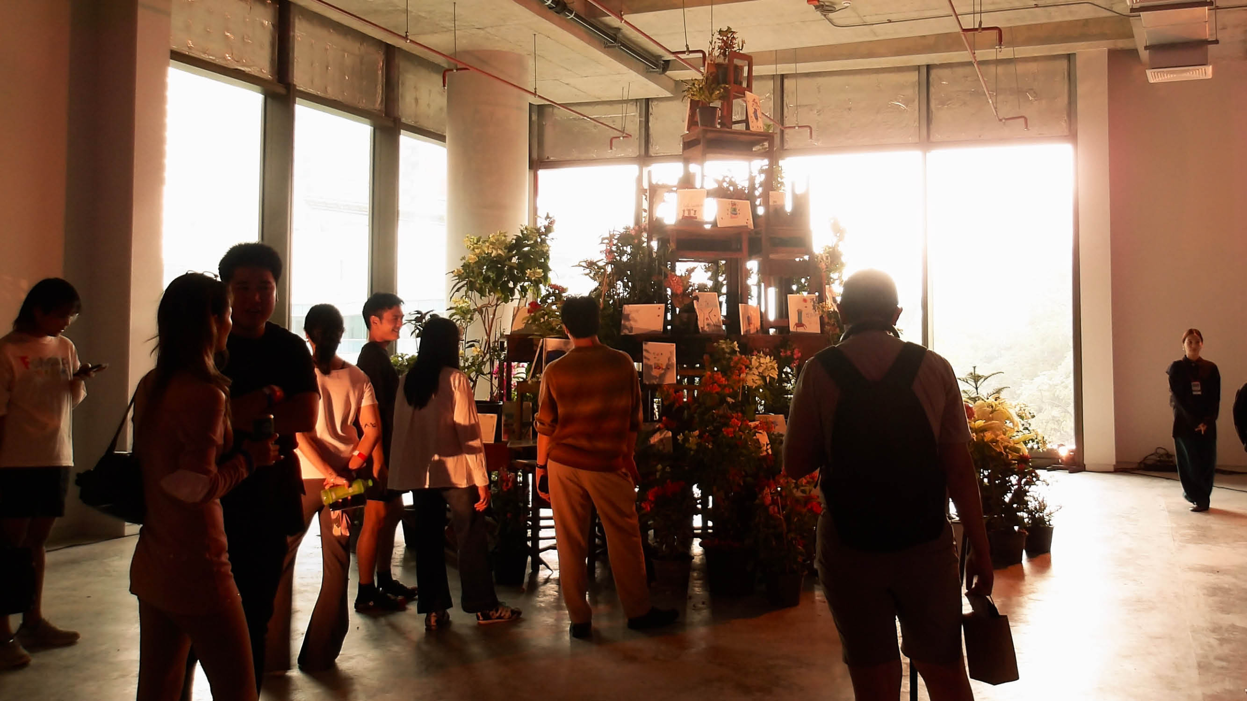 ทันทีที่เดินเข้าไปจะพบกับเก้าอี้-โต๊ะเรียนที่วางกองกันพะเนิน มีภาพวาดและแจกันดอกไม้วางแซมในแต่ละซอกมุม ของจัดแสดงเป็นส่วนหนึ่งของนิทรรศการ Vase of Possibilities โดย บอล-นรภัทร ศักดิ์อาธรทรัพย์ จาก เอส เอ ซี แกลเลอรี (SAC Gallery) และนักเรียนชั้นประถมศึกษาปีที่ 1 จากโรงเรียนเผดิมศึกษา