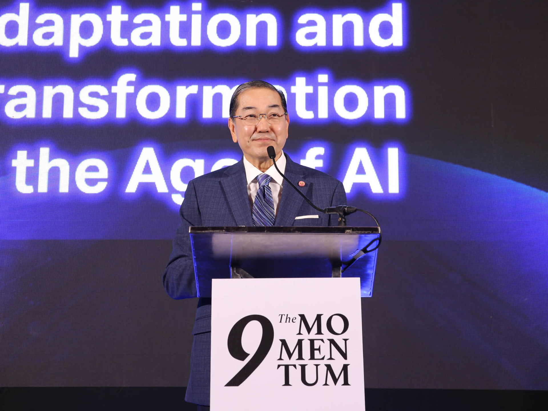 ศาสตราจารย์พิเศษ ดร.สุรเกียรติ์ เสถียรไทย อดีตรองนายกรัฐมนตรี รัฐมนตรีว่าการกระทรวงการต่างประเทศ นายกสภาจุฬาลงกรณ์มหาวิทยาลัย และนายกสภามหาวิทยาลัยเชียงใหม่ กล่าวเปิดงาน Exclusive Dinner Talk Thailand Vision ‘AI : Ultimate Opportunity or Opponent’ วาระครบรอบ 9 ปี The Momentum ในหัวข้อ ‘Adaptation and Transformation in the Age of AI’