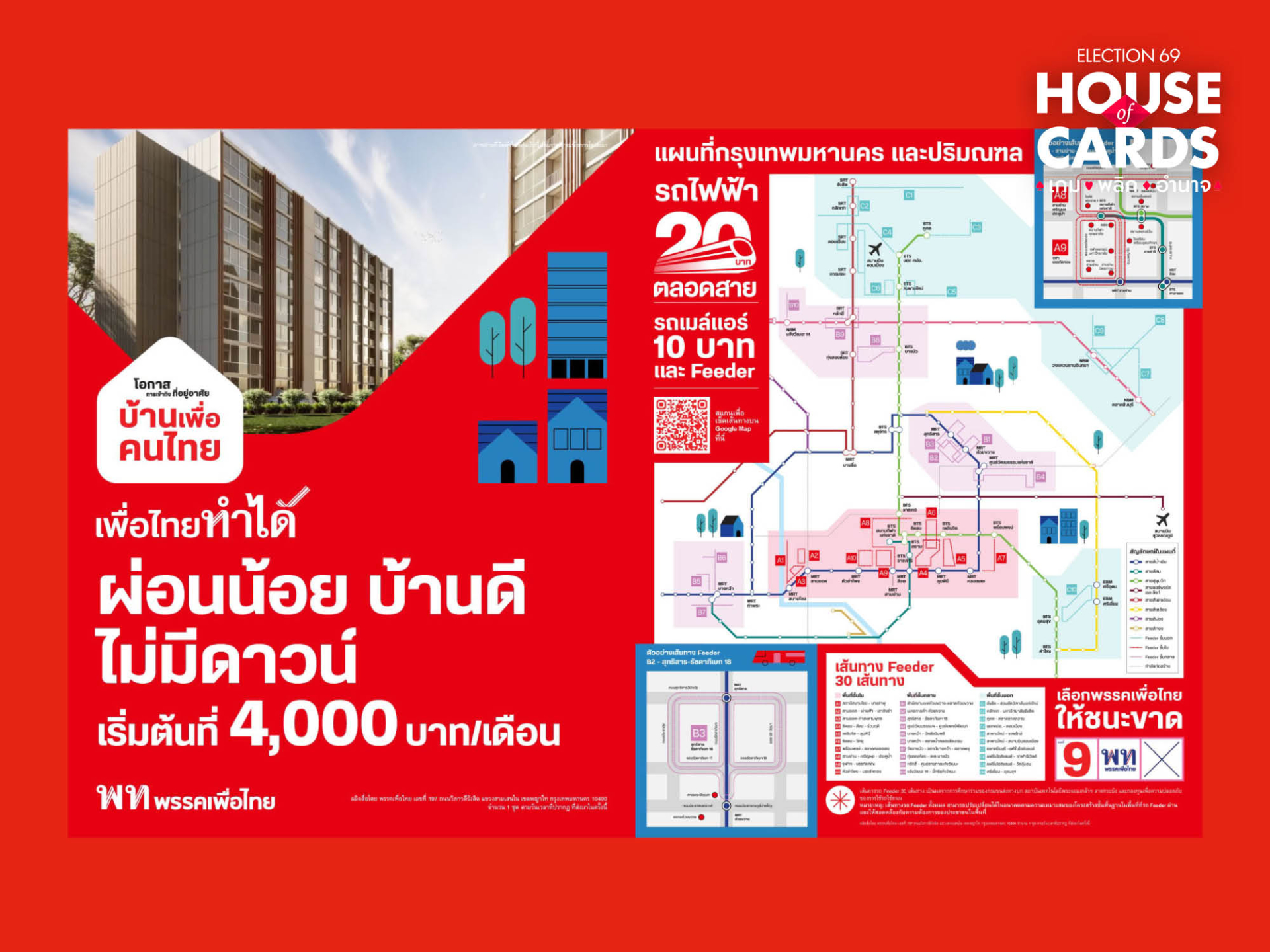 รถไฟฟ้า 20 บาทตลอดสาย พ่วง ‘บ้านเพื่อคนไทย’-Feeder 10 บาท ปฏิรูปขนส่งมวลชนเขตเมืองแบบ ‘เพื่อไทย’