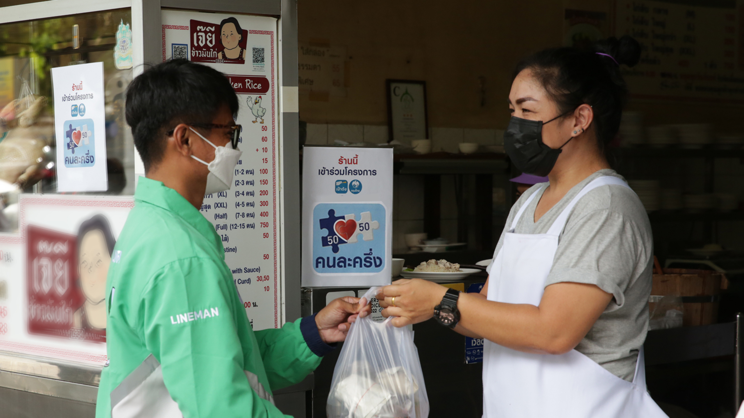 สื่อโฆษณา ณ จุดขาย (POSM) เพื่อสื่อสารกับลูกค้าว่า ร้านสามารถสั่งผ่านคนละครึ่งพลัสได้