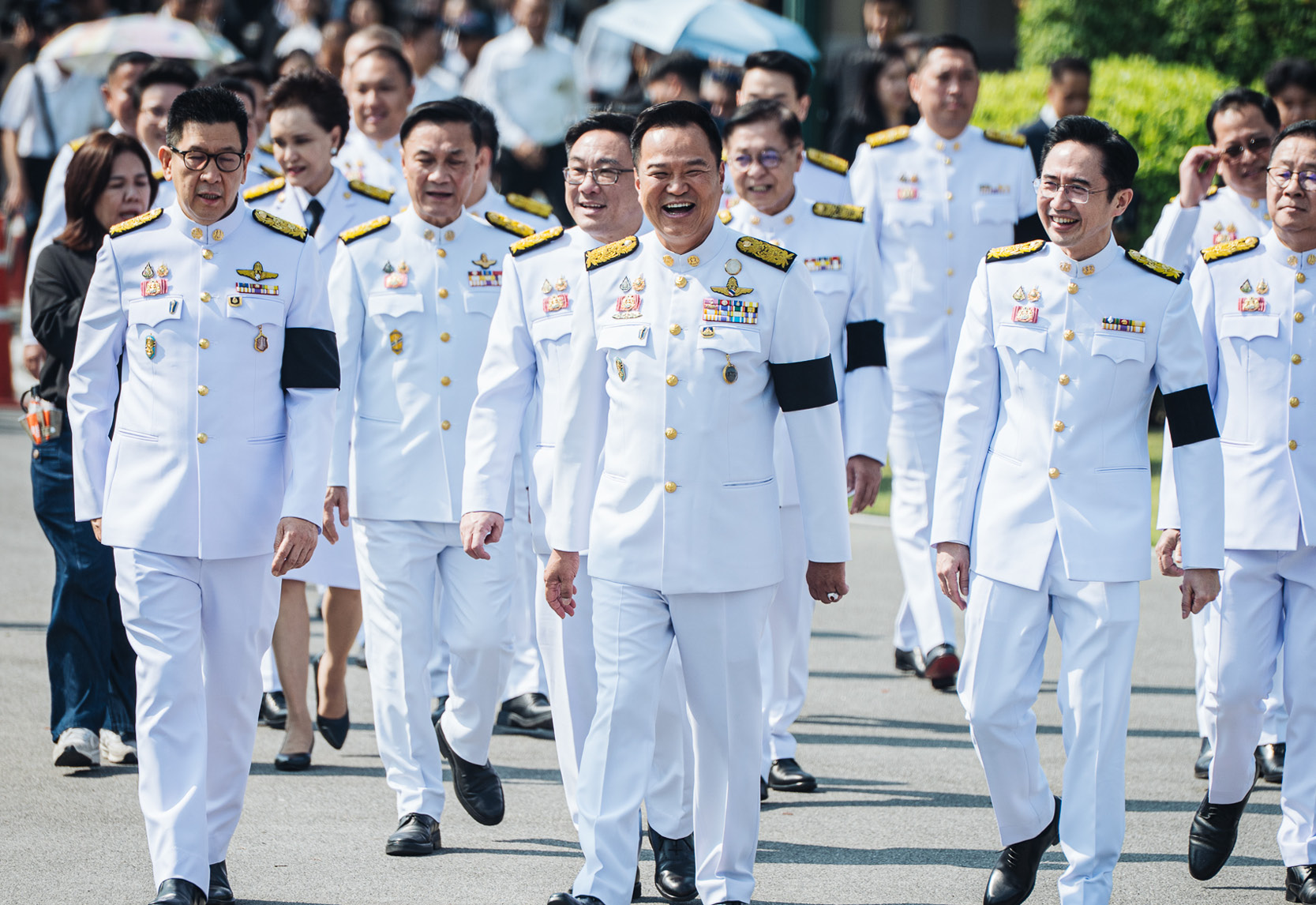 วันนี้ (6 เมษายน 2569) ที่สนามหญ้าหน้าตึกไทยคู่ฟ้า ทำเนียบรัฐบาล อนุทิน ชาญวีรกูล นายกรัฐมนตรีและรัฐมนตรีว่าการกระทรวงมหาดไทย นำคณะรัฐมนตรี (ครม.) ชุดที่ 66 ร่วมถ่ายรูปหมู่ในชุดปกติขาว ก่อนจะเข้าเฝ้าฯ ถวายสัตย์ปฏิญาณตนเป็นลำดับถัดไป