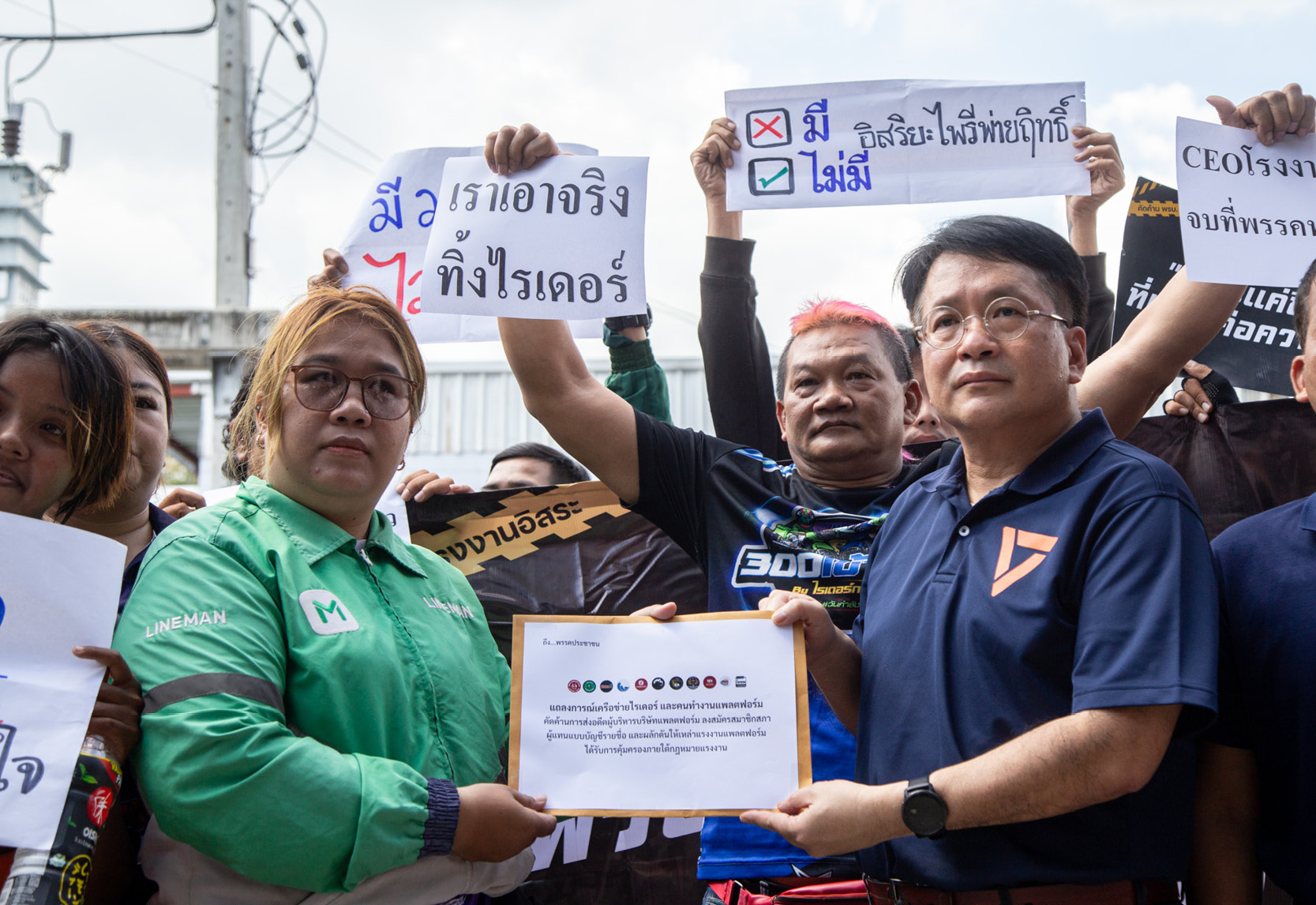 ในเอกสารเรียกร้องยังระบุด้วยว่า “พวกเราเครือข่ายไรเดอร์และคนทำงานแพลตฟอร์มขอเรียกร้องให้พรรคประชาชนทบทวนการส่งผู้สมัครดังกล่าว และยกระดับแรงงานไรเดอร์ให้ได้รับการคุ้มครองภายใต้กฎหมายคุ้มครองแรงงาน”
