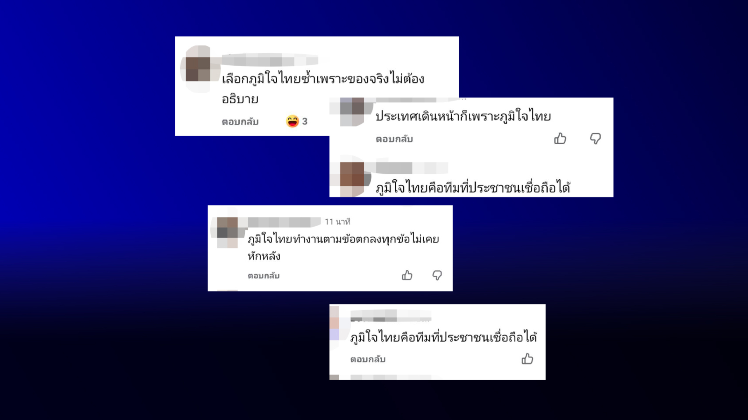 The Momentum ตรวจสอบความเคลื่อนไหวดังกล่าวผ่าน Zocial Eye เครื่องมือ Listening Tool ของ Wisesight ในวันที่ 12 ธันวาคม 2568 โดยใช้คีย์เวิร์ด “ภูมิใจไทยคือทีมที่ประชาชนเชื่อถือได้” พบว่า คอมเมนต์ในลักษณะนี้มีการระดมไปตามเพจของสำนักข่าวต่างๆ โดยเฉพาะ Thairath-ไทยรัฐออนไลน์ และ The MATTER ระหว่างเวลา 11.53-15.17 น.