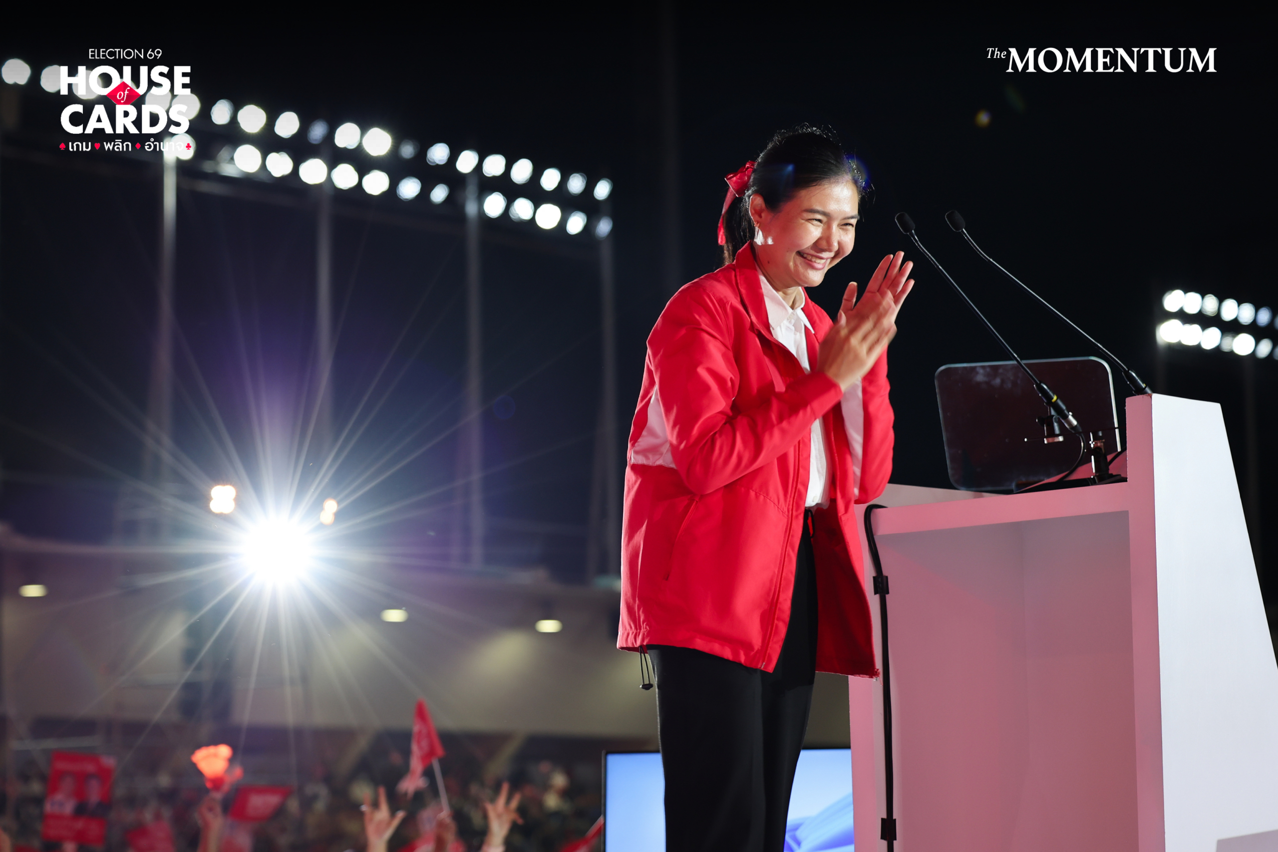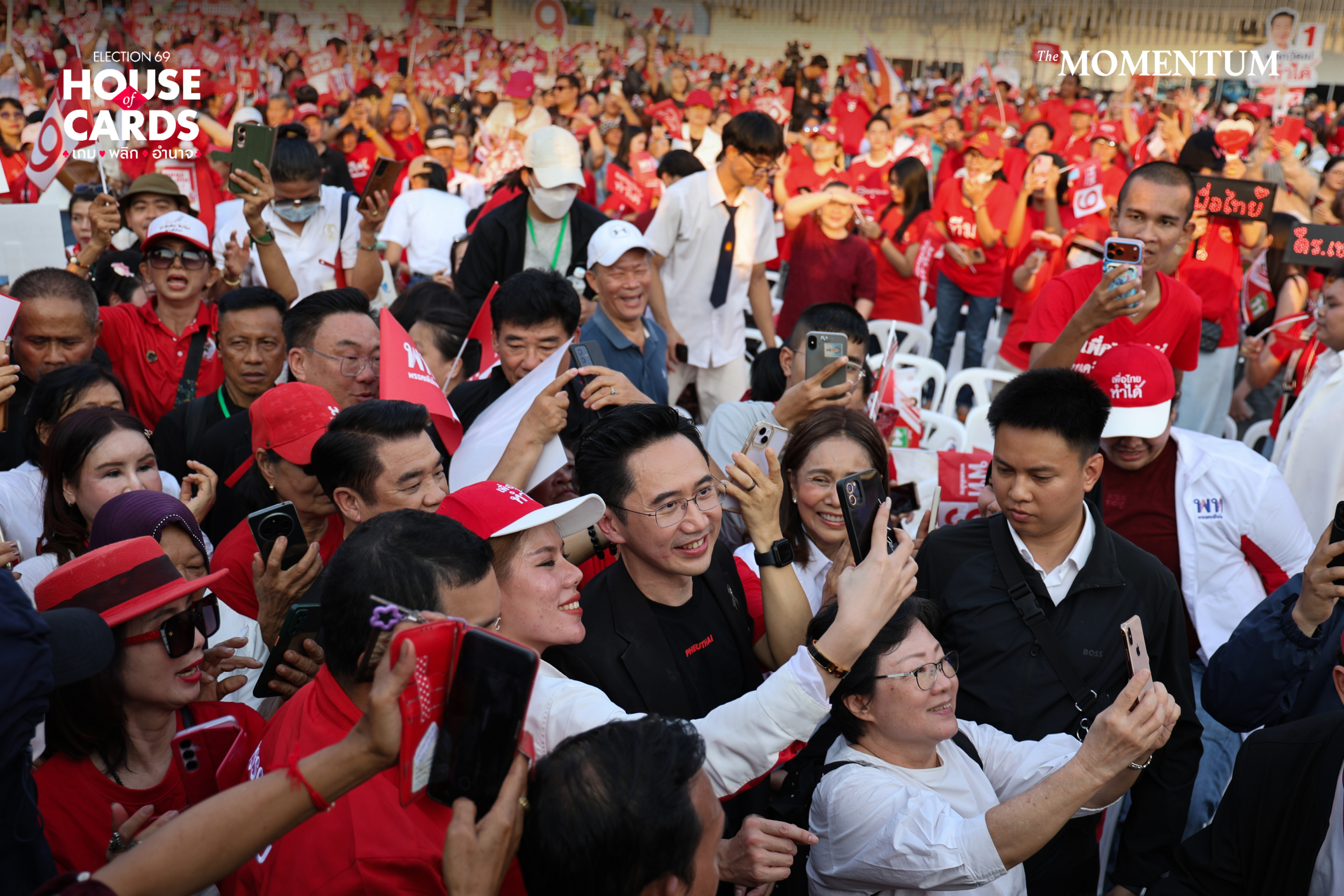 วันนี้ (6 กุมภาพันธ์ 2569) ที่สนามกีฬาเทพหัสดิน พรรคเพื่อไทยจัดงานปราศรัยใหญ่ครั้งสุดท้าย ในชื่องาน ‘ยศชนันทำได้ ทำให้ไทยยิ่งใหญ่’ โดยมีแกนนำพรรคเพื่อไทย แคนดิเดตนายกรัฐมนตรีของพรรคเพื่อไทย และตัวแทนผู้สมัค รสส. พรรคเพื่อไทย เข้าร่วมงานกันอย่างคับคั่ง รวมถึง แพทองธาร ชินวัตร อดีตนายกรัฐมนตรี และพี่สาว พินทองทา ชินวัตร ก็เข้าร่วมภายในงานด้วย ทั้งนี้ผู้จัดงานชักชวนให้ผู้เข้าร่วมสวมชุดสีแดง อีกทั้งยังมี Fan Cam เล่นกับผู้ที่เข้าร่วมฟังปราศรัย เป็นการจัดงานปราศรัยที่เน้นให้ทุกคนมีส่วนร่วม
