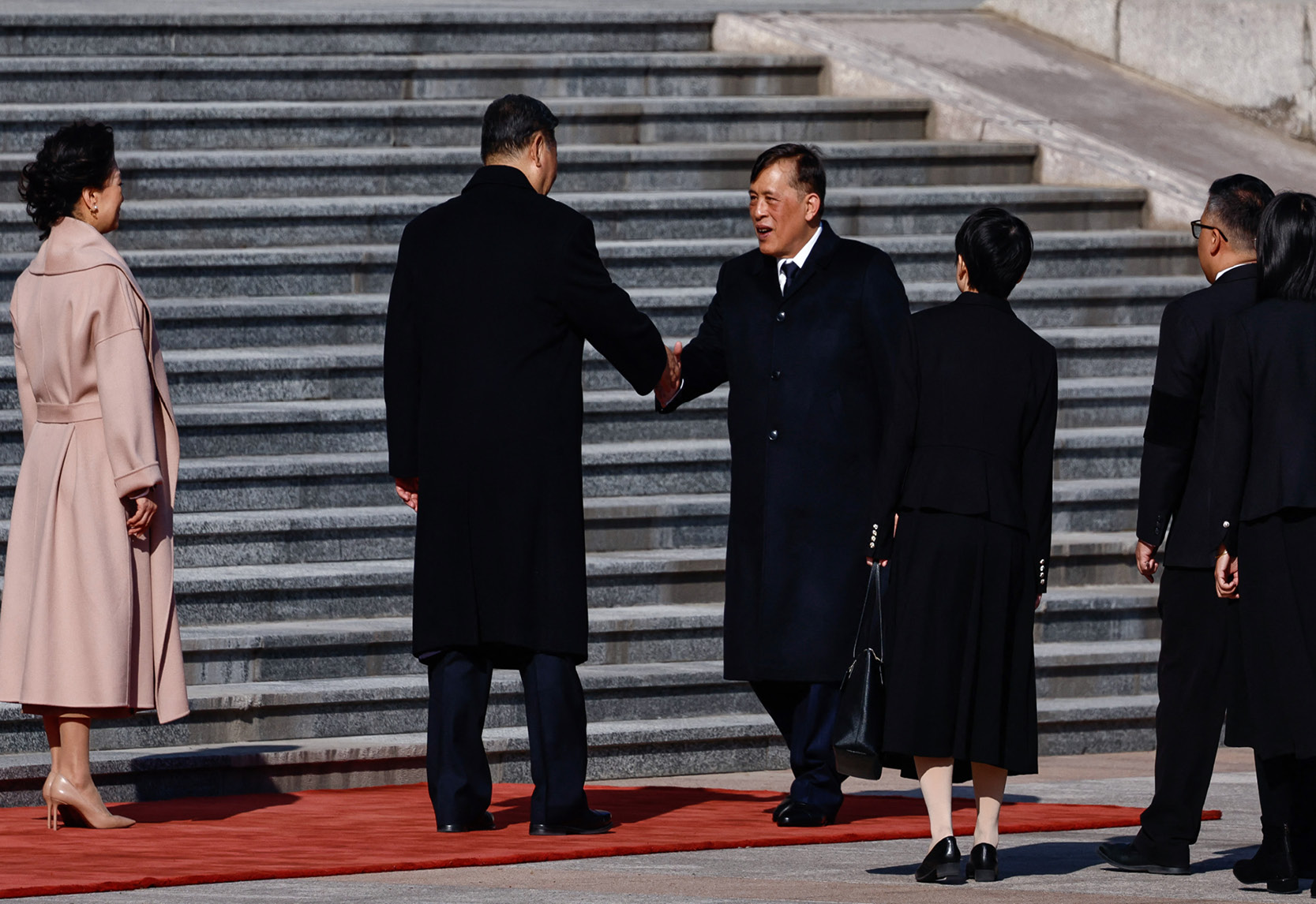 วันนี้ (14 พฤศจิกายน 2025) ที่มหาศาลาประชาชน (The Great Hall of People) กรุงปักกิ่ง ประเทศจีน สี จิ้นผิง (Xi Jinping) ประธานาธิบดีจีน พร้อมด้วย เผิง ลี่หยวน (Peng Liyuan) ภรรยา ให้การต้อนรับ พระบาทสมเด็จพระวชิรเกล้าเจ้าอยู่หัว และสมเด็จพระนางเจ้าสุทิดา พัชรสุธาพิมลลักษณ พระบรมราชินี ที่เสด็จพระราชดำเนินเยือนประเทศจีนอย่างเป็นทางการ ตั้งแต่วันที่ 13-17 พฤศจิกายน 2025