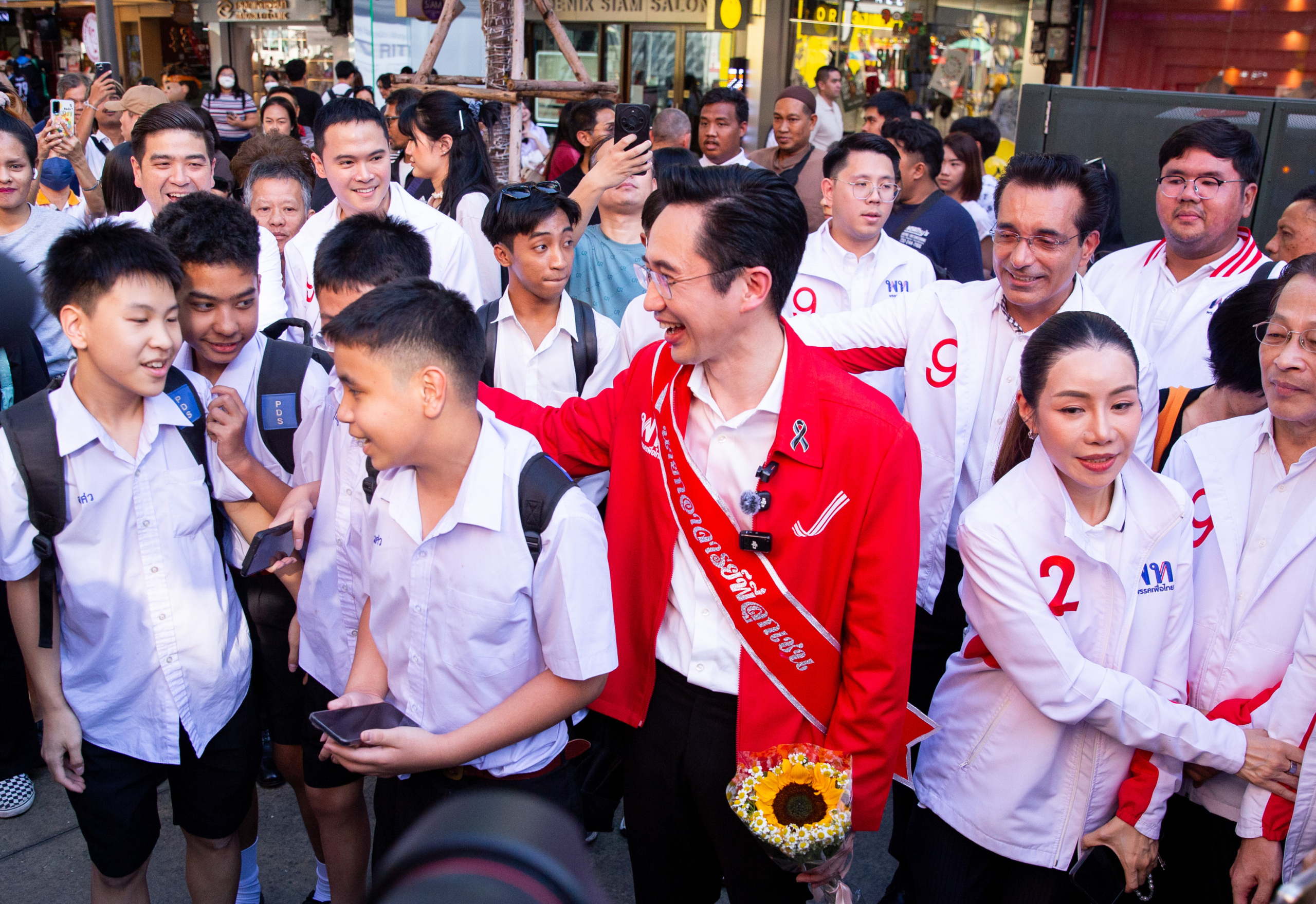 บรรยากาศสยามสแควร์ช่วงเย็นวันนี้ (23 มกราคม 2569) เต็มไปด้วยความคึกคักของประชาชนที่มารอพบปะกับ ยศชนัน วงศ์สวัสดิ์ แคนดิเดตนายกรัฐมนตรี พรรคเพื่อไทย พร้อมด้วย สส.กรุงเทพฯ และจังหวัดใกล้เคียง รวมถึง สส.แบบบัญชีรายชื่อ พรรคเพื่อไทย ที่เดินทางมาลงพื้นที่หาเสียงและทักทายประชาชนที่มาจับจ่ายใช้สอยในช่วงเย็น โดยมีประชาชนสวมมงกุฎมามอบสายสะพายเขียนว่า ‘นายกอาจารย์พี่ลูกเชน’ ให้กับแคนดิเดตนายกฯ อีกทั้งยังเสิร์ฟโมเมนต์อบอุ่นแวะโฟโต้บูทกับ สส.ที่มาร่วมลงพื้นที่