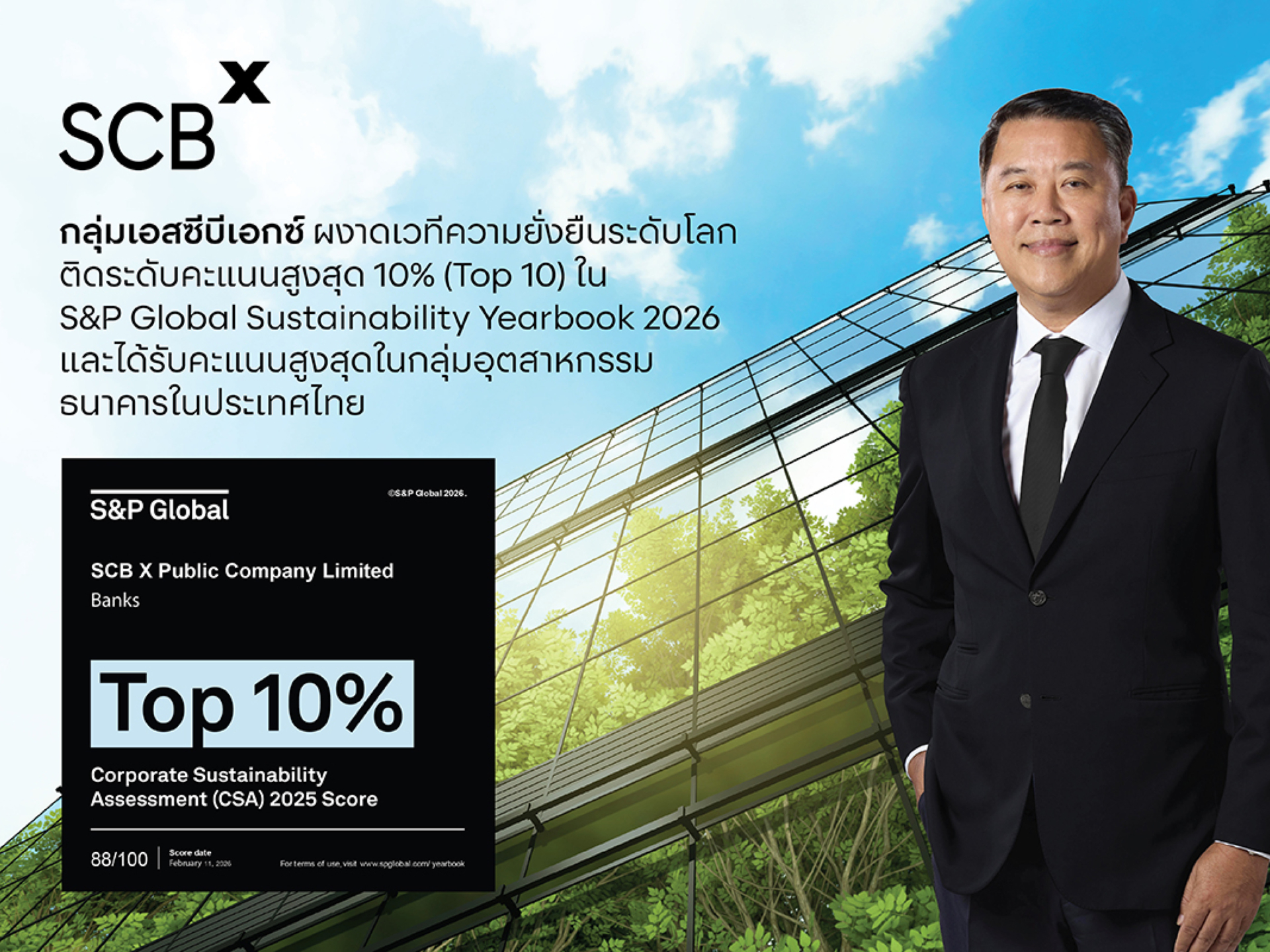 บริษัท เอสซีบี เอกซ์ จำกัด (มหาชน) หรือ SCBX กลุ่มธุรกิจเทคโนโลยีทางการเงินชั้นนำของประเทศไทย ประกาศความสำเร็จครั้งสำคัญ ล่าสุดบนเวทีความยั่งยืนระดับสากล โดยได้รับคัดเลือกให้เป็นสมาชิกในดัชนีความยั่งยืนระดับโลกดาวโจนส์ (Dow Jones Sustainability Indices หรือ DJSI) ทั้งในกลุ่มดัชนีโลก (World Index) และดัชนีตลาดเกิดใหม่ (Emerging Markets Index) ประจำปี 2568 หมวดธุรกิจธนาคาร ต่อเนื่องเป็นปีที่ 9 อีกทั้งยังได้รับคัดเลือกให้อยู่ใน S&P Global Sustainability Yearbook 2026 อย่างเป็นทางการ